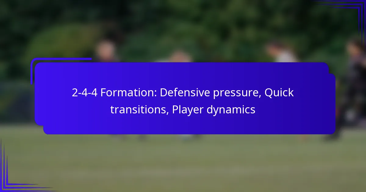The 2-4-4 formation applies defensive pressure by utilising a compact structure that emphasises strong positioning and quick transitions. This setup allows teams to effectively close down space and challenge opponents, while maintaining a solid defensive shape that can adapt to various attacking threats.